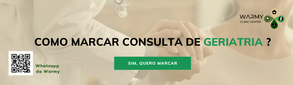 Na Warmy, pode realizar a consulta de Geriatria na nossa unidade de saúde ou, se preferir, no conforto do domicílio. Esta primeira consulta é geralmente mais extensa e inclui a Avaliação Geriátrica Global, onde se identificam prioridades e se define uma estratégia personalizada de intervenção.